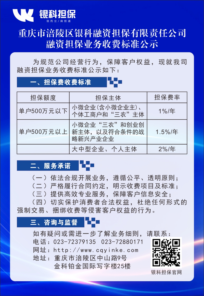 融资担保业务收费标准公示