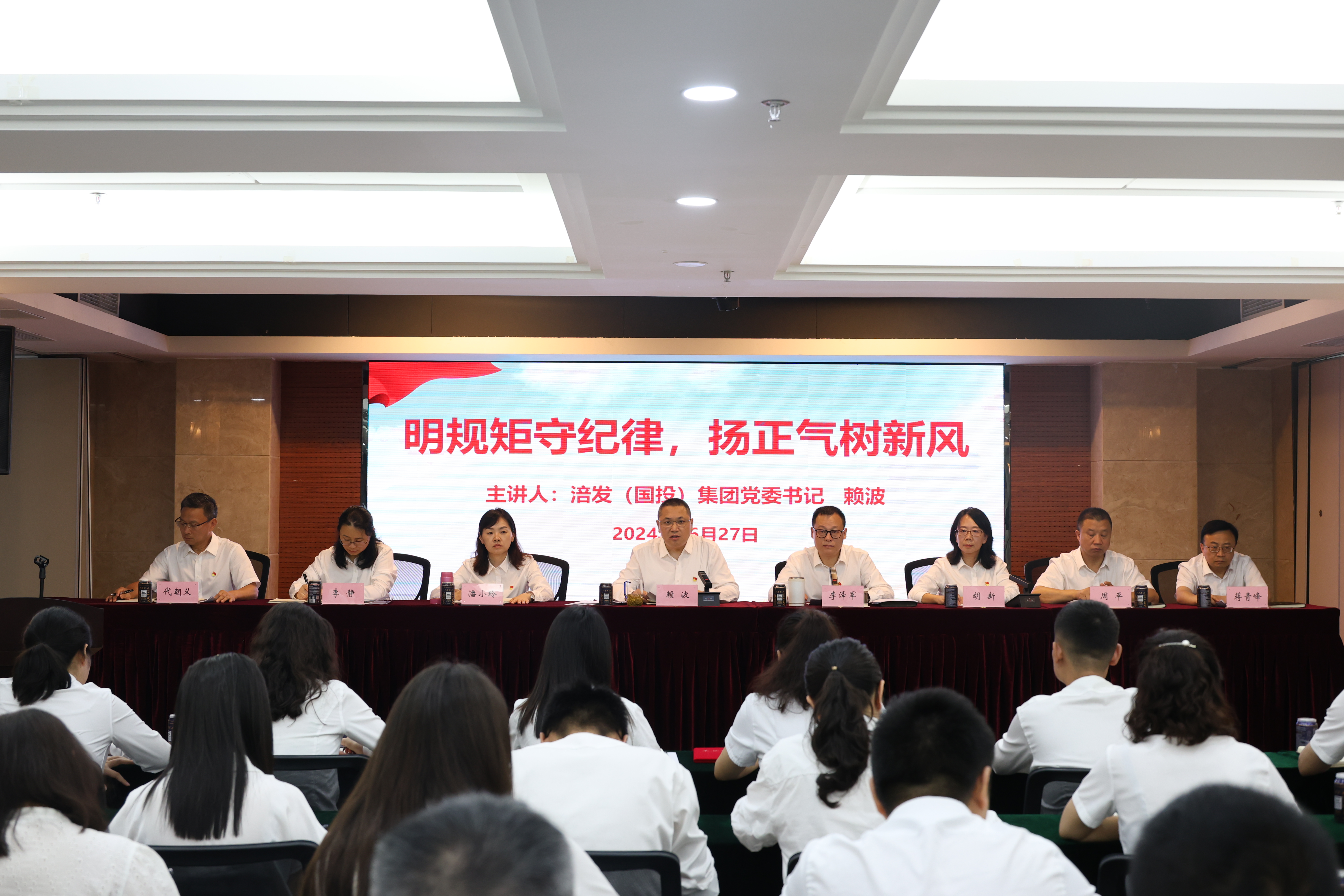 本次活动,全体党员重温了入党誓词,共同回顾入党初心;集团党委书记赖波以“明规矩守纪律,扬正气树新风”为题,从“加强学纪、深入知纪、清醒明纪、坚持守纪”四个方面,为全体党员干部职工讲授专题党课。