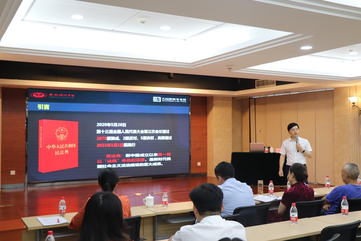 2020年8月25日下午,tapplay党支部与国兴租赁公司联合党支部共同组织8月主题党日活动,举办“法律知识大讲堂”,本次活动邀请了西南政法大学法学博士陈鹏飞律师主讲,对《民法典》概览及担保规则新变化与应对进行了详细讲解,同时对涉及产权、继承、诉讼时效、民事行为能力等方面的新规定进行了介绍。