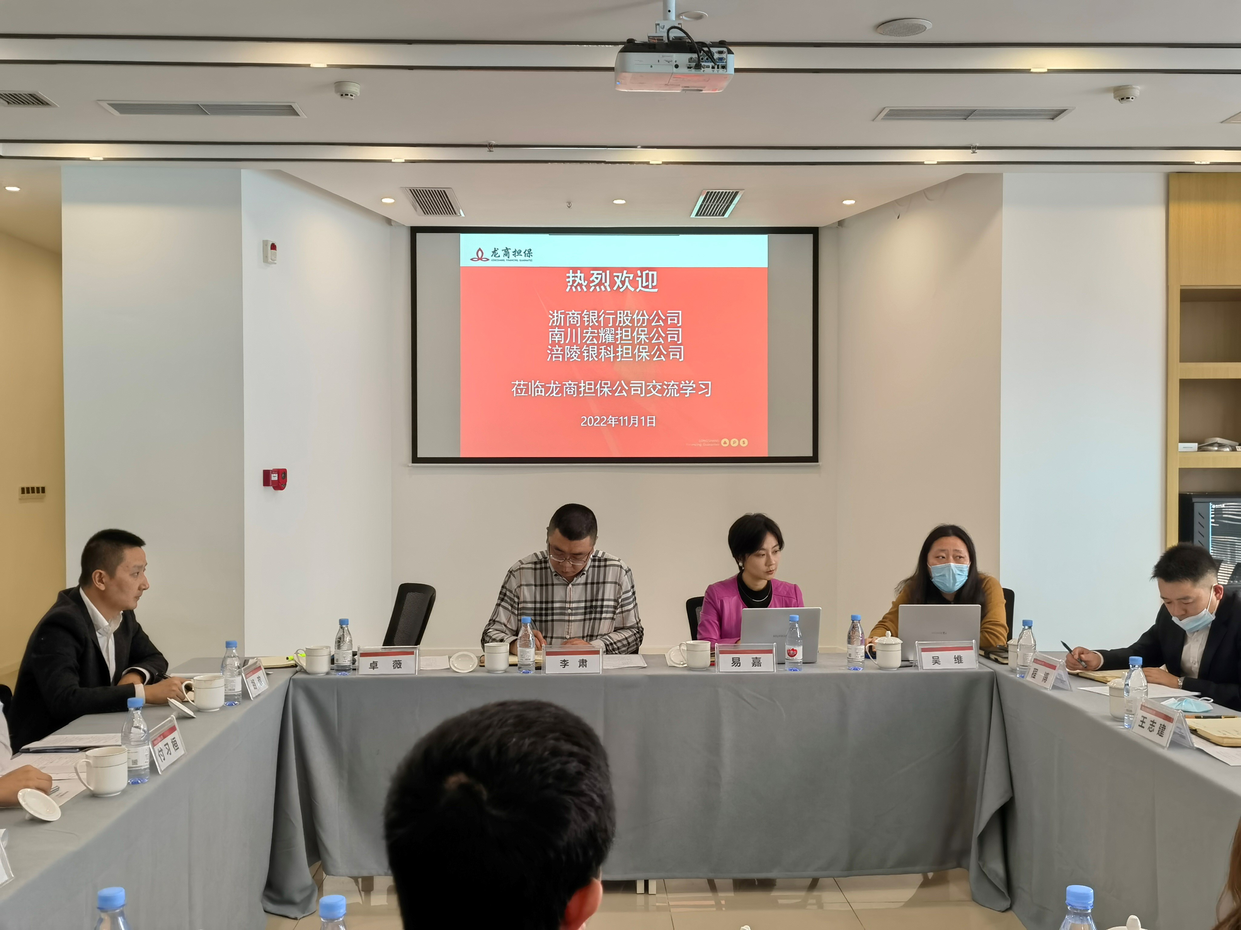 年11月1日上午,公司总经理付习桓在重庆龙商担保公司5楼会议室,会同重庆龙商担保公司、南川宏耀担保公司与浙商银行重庆分行就“总对总”批量担保业务进行了座谈交流。